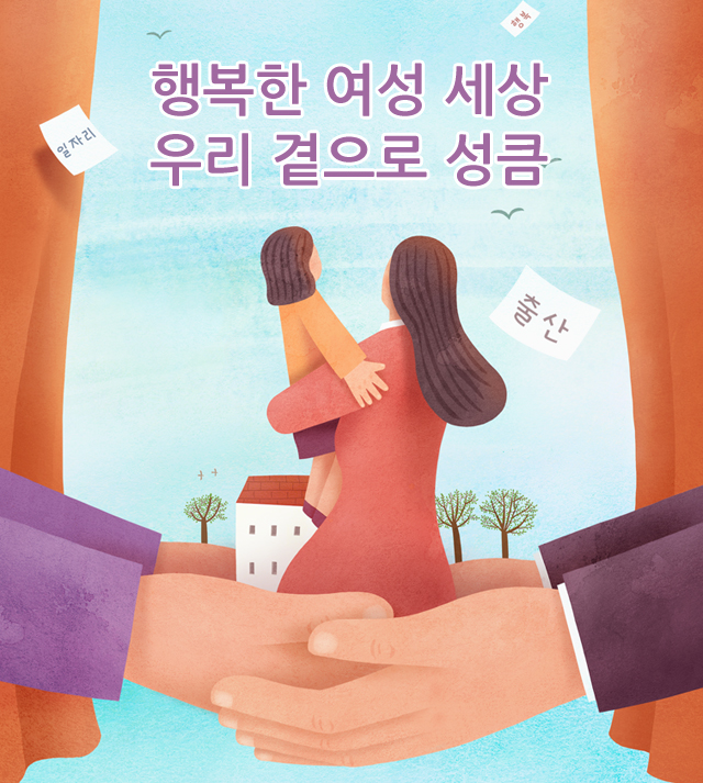 경력단절 여성 일자리 확대 - 새 옷 갈아입듯 새 일자리 찾아줍니다 총론 - 마음 편하게 아이 키우는 사회로… 맞벌이 부부 지원 - 직장보육시설로 아이와 함께 출근해요~여성 안전·장애여성 지원 - 안심 택시 등 보호장치 꼭 기억하세요다문화 전문가 인터뷰 - “남편ㆍ시부모도 다문화교육 참여해야”