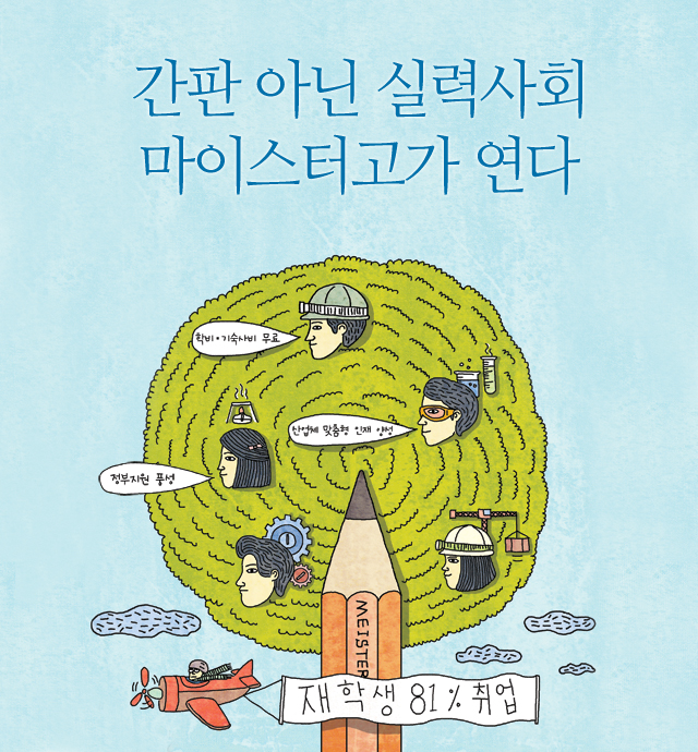 마이스터고가 각광받고 있다. 우수한 학생들이 몰리고 있다. 무엇보다 취업에 강하다는 게 매력이다. 현재 재학생들의 81퍼센트가 이미 취업을 결정한 상태다. 정부의 목표는 졸업생 전원 취업이다. 정부 지원도 풍성하다. 학비와 기숙사비가 모두 무료다. 기업들의 관심도 크다. 산업체 맞춤형 인재를 양성하기 때문이다. 정부는 마이스터고를 더욱 확대할 예정이다. 올해 7개교가 추가로 개교해 모두 28개교가 운영되고 있다. 학력보다는 실력으로 인정받는 사회, 마이스터고가 그 문을 열고 있다. |